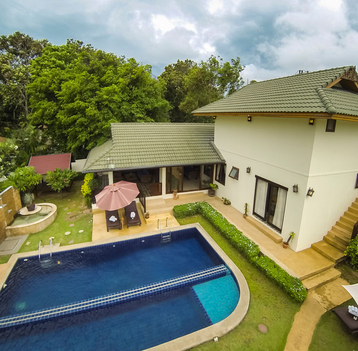 Our partially renovated luxury villa, with six spacious bedrooms, all featured with airconditioning and en suite bathrooms, promises asensual and opulent escape for you and your loved ones. On top, a tantalizing studio offers a panoramic view of Samrong Bay and the winding road below. Inside this studio, a sumptuous king-size bed awaits, alongside a sleek kitchen and a decadent bathroom, ensuring every moment is steeped in serenity, splendor, and comfort.